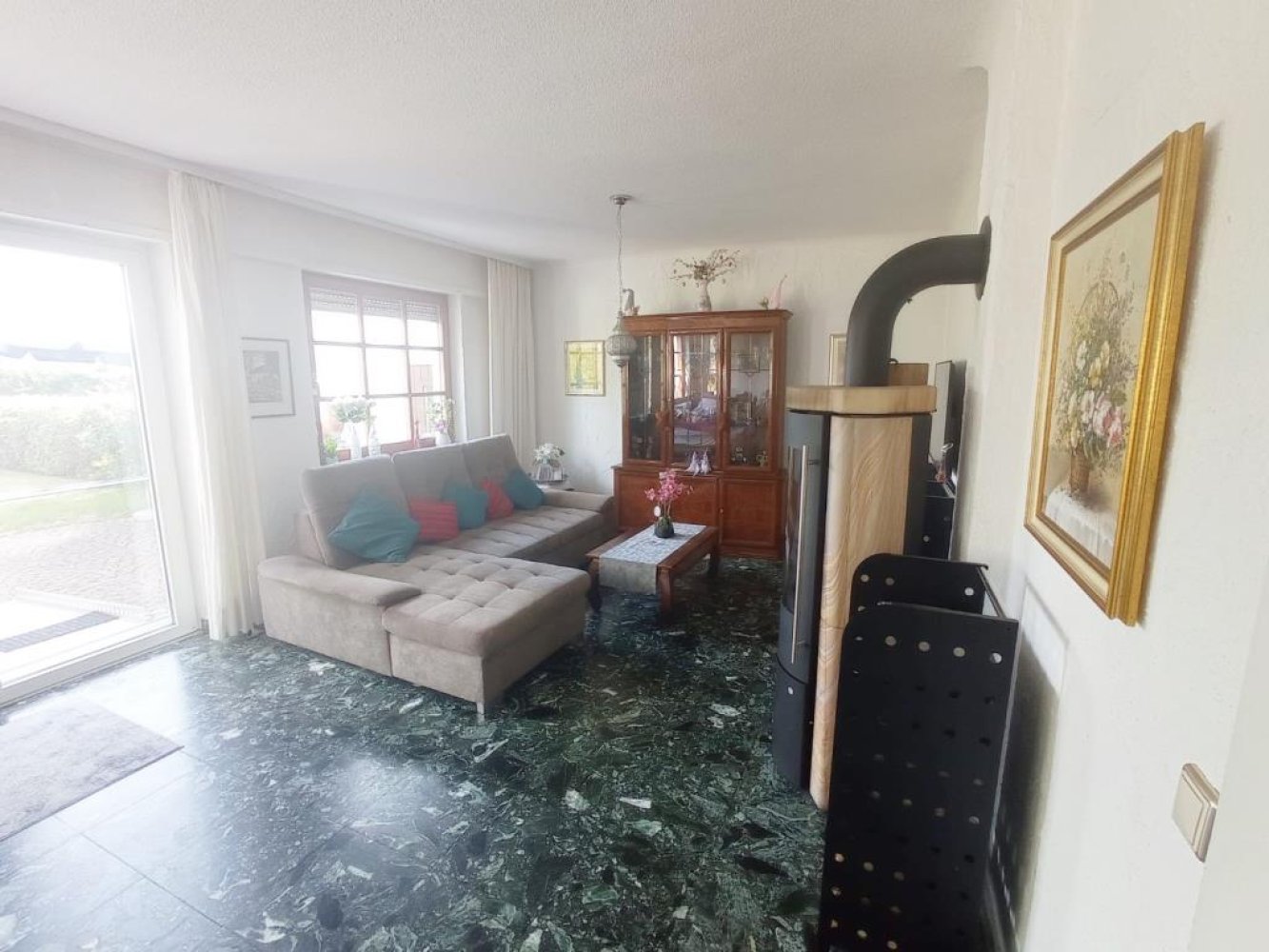 EG: Großer Eingangsbereich, Wohn-Esszimmer mit Kaminofen und