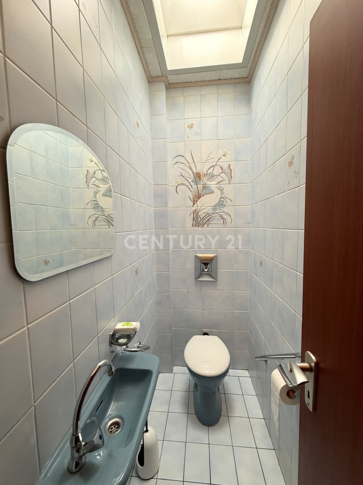 Das Bad mit Dusche und Dachlicht sowie das separate WC profitieren von Tageslicht, freuen sich aber auch über eine Modernisierung. Diele, Flur und ein separater Garderobenbereich ergänzen das Erdgeschoss auf stimmige Weise.