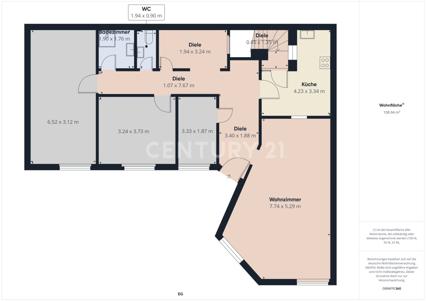 Das Exposé zu diesem Angebot und die darin gemachten Angaben in Wort und Bild und Werten stellen keine Beschaffenheitsvereinbarung dar.