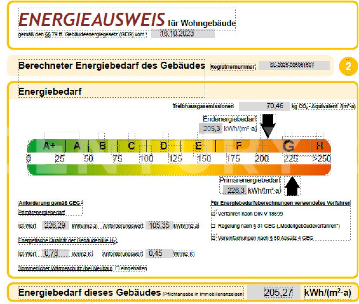 Endenergiebedarf 205.27 kWh/(a·m²)