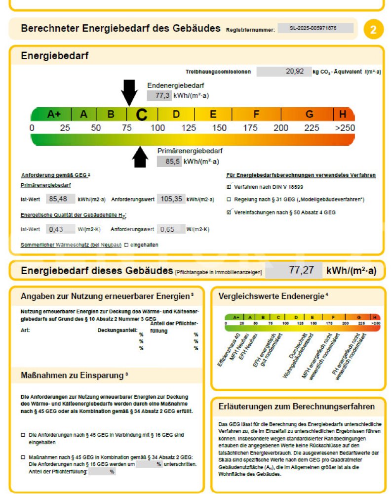 Endenergiebedarf 77.27 kWh/(a·m²)