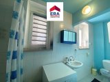 Die größere Wohnung im EG mit ca.60m² wurde folgendermaßen aufgeteilt: Küche mit Sitzbereich, ein Wohnzimmer, ein Schlafzimmer, ein Badezimmer mit Wanne und Waschbecken sowie ein separates WC ohne Waschbecken.