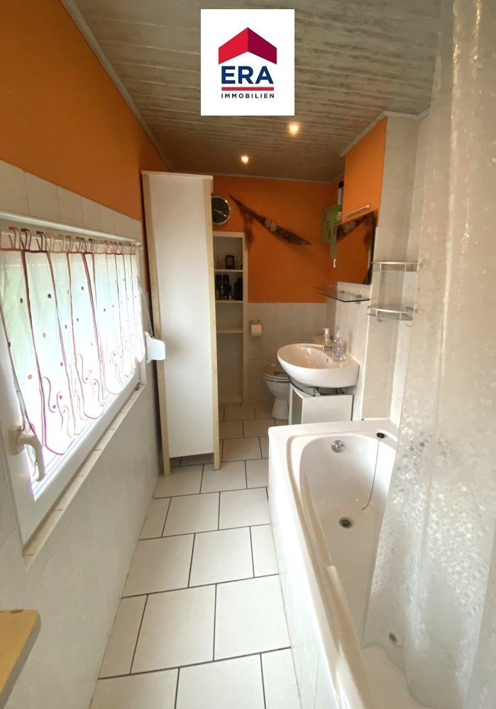 Im EG finden Sie die offene Küche mit direktem Zugang zum Garten, das Wohnzimmer mit Kamin und ein Badezimmer mit Wanne und WC.