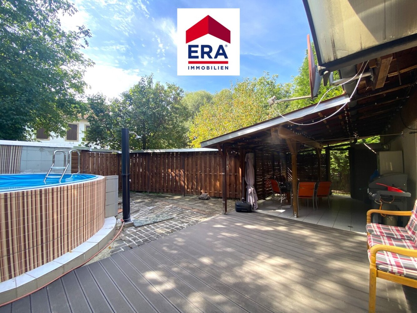 Im uneinsehbaren Garten befinden sich ein aufgestellter Pool mit Solardusche, ein überdachter Sitzbereich, ein Gartengerätehaus und genügend Grünfläche zur weiteren Freizeitgestaltung.