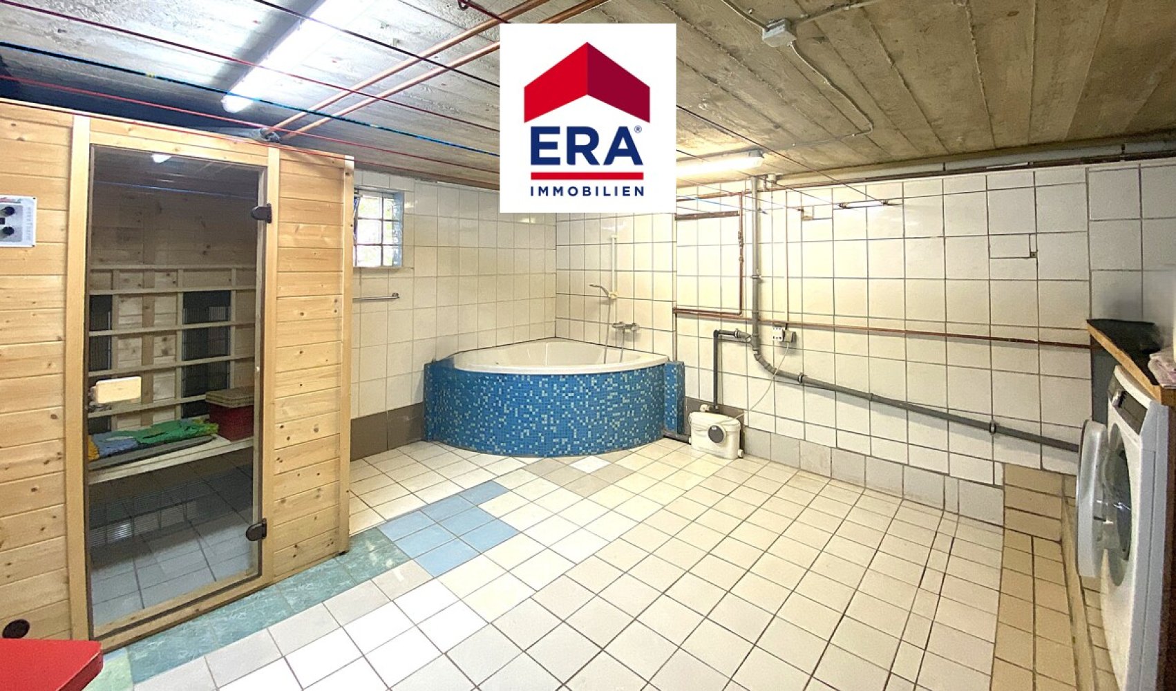 Im UG finden Sie den Heizungsraum, Abstellflächen, ein separates WC mit Waschbecken, die Waschküche mit Wanne und Infrarotkabine sowie 4 ausgebaute Wohnräume, einer davon mit Kamin (Holz), Kochnische und Zugang zum Garten.