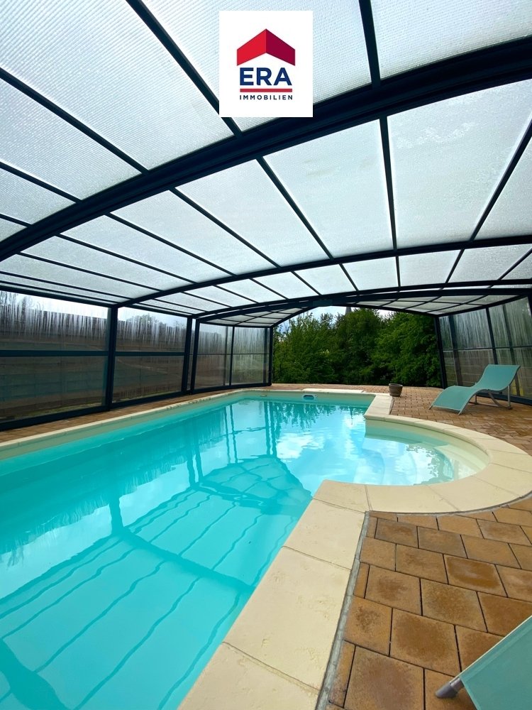 Auf der wunderschönen, mit Keramikstein ausgestatteten Außenterrasse genießen Sie, unter einer elektrischen Markise, die ruhige Atmosphäre mit Blick ins Grüne, über die hochwertige Holztreppe gelangen Sie zur unteren Terrasse mit Sitzbereich und überdachtem, eingelassenen Außenpool, die Seitenteile des hohen Pooldaches lassen sich an mehreren Stellen aufschieben, des Weiteren befinden sich im großzügigen Garten ein Baumhaus, ein Gewächshaus sowie ein hoher Obstbaumbestand (Mirabelle, Kirsche, Pflaume, Apfel, Birne, Feige, Walnuss).