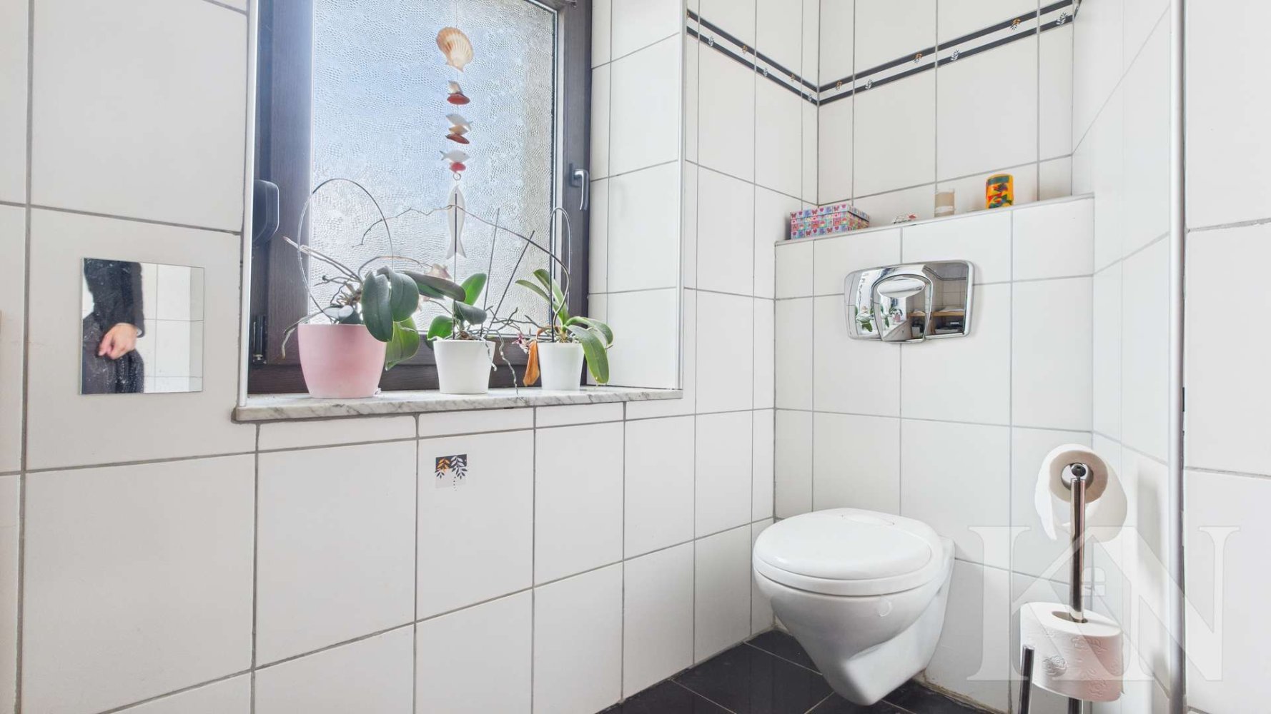 Im Erdgeschoss erwartet Sie der zentrale Lebensbereich des Hauses: ein großzügiger, offener Wohn-, Ess- und Küchenbereich mit ca. 49 m², der zum Mittelpunkt des täglichen Lebens wird. Die hellen Oberflächen und die moderne Gestaltung schaffen eine wohnliche Atmosphäre. Ergänzt wird diese Ebene durch das modernisierte Tageslichtbad mit Dusche und WC sowie den Balkon (ca. 7,31 m²) mit schönem Blick ins Grüne.