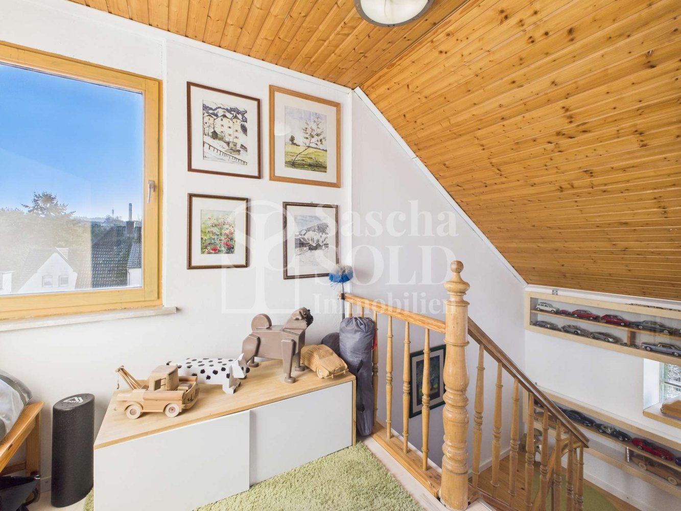 Über die Treppe gelangt man in das Dachgeschoss, in dem sich ein Schlafzimmer, ein Kinderzimmer sowie ein Durchgangszimmer befinden, das sich ideal als Büro, Hobbyraum oder Ankleide eignet.