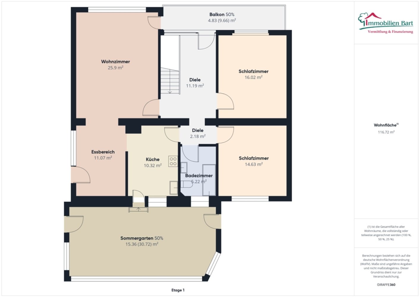 Die Käuferprovision beträgt 3,57 % inkl. MwSt. vom notariell beurkundeten Kaufpreis und ist verdient und fällig mit der notariellen Beurkundung.