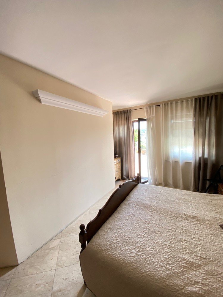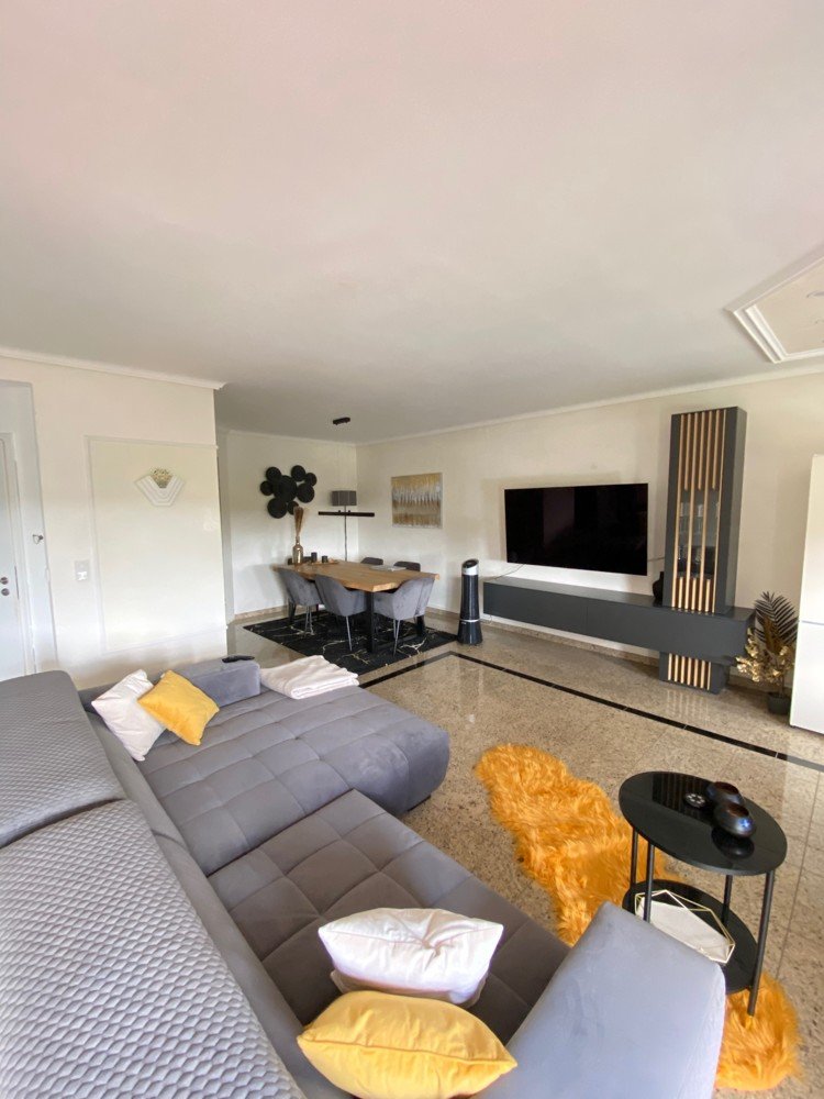 Im großzügigen OG befindet sich eine Wohnung mit 3 Schlaf- oder Arbeitszimmern, eines davon mit Ankleidebereich und Zugang zum Balkon. Weiterhin der Wohn- und Essbereich mit Küche und zwei ebenfalls sehr luxuriöse Bäder.