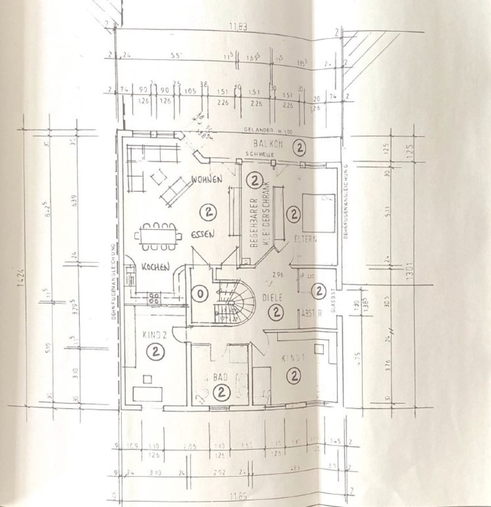 Ursprünglich als Haus für die große Familie geplant, ist die Immobilie in drei Einheiten aufgeteilt. Eine entsprechende Abgeschlossenheitserklärung wurde vorbereitet, bisher aber nicht eingereicht.