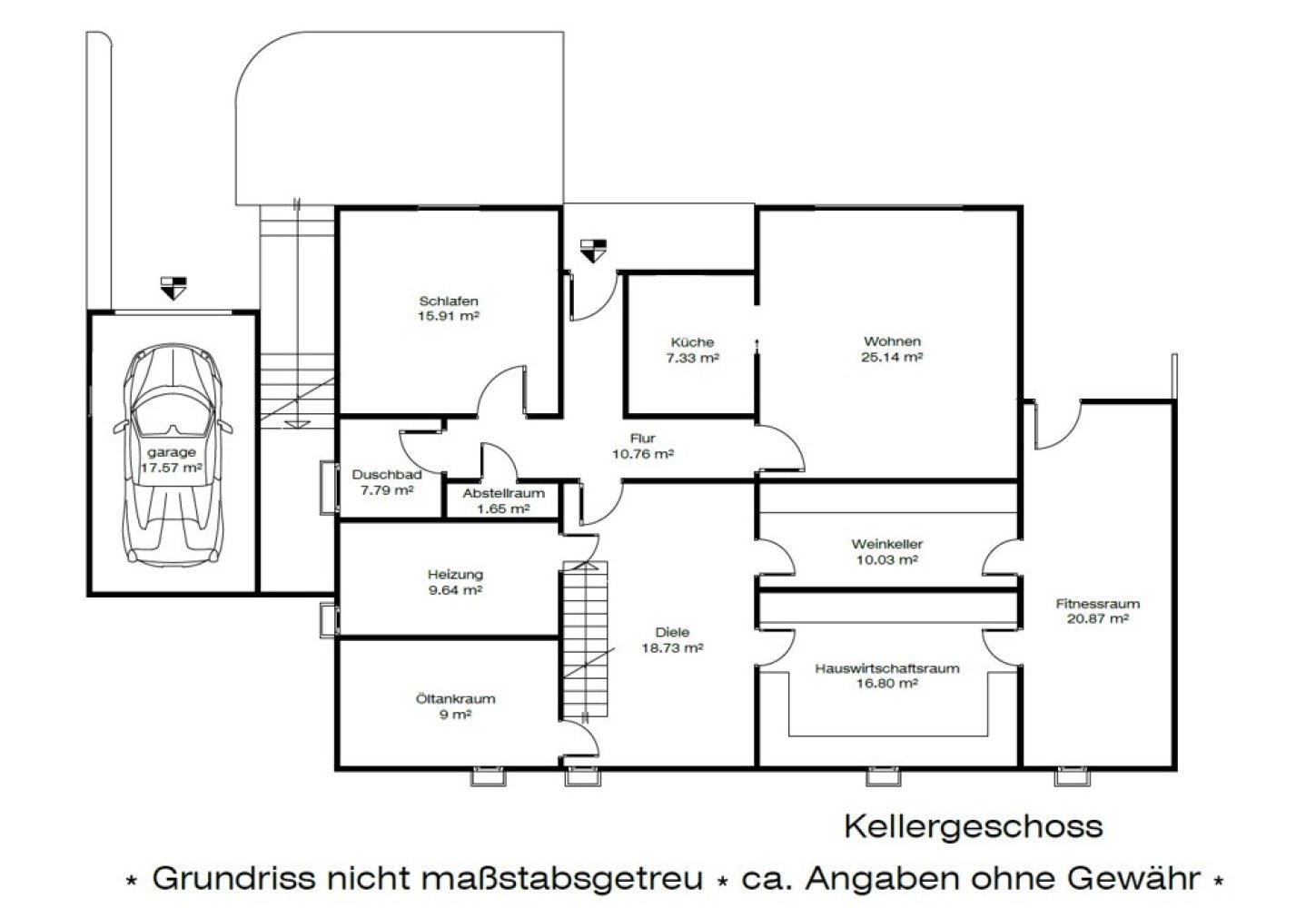Im UG des Hauses befinden sich die Keller- und Technikräume und die Einliegerwohnung mit separatem Eingang auf der Gebäuderückseite. Ohne größeren Aufwand lässt sich hier auch wieder ein direkter Zugang zur ELW herstellen.