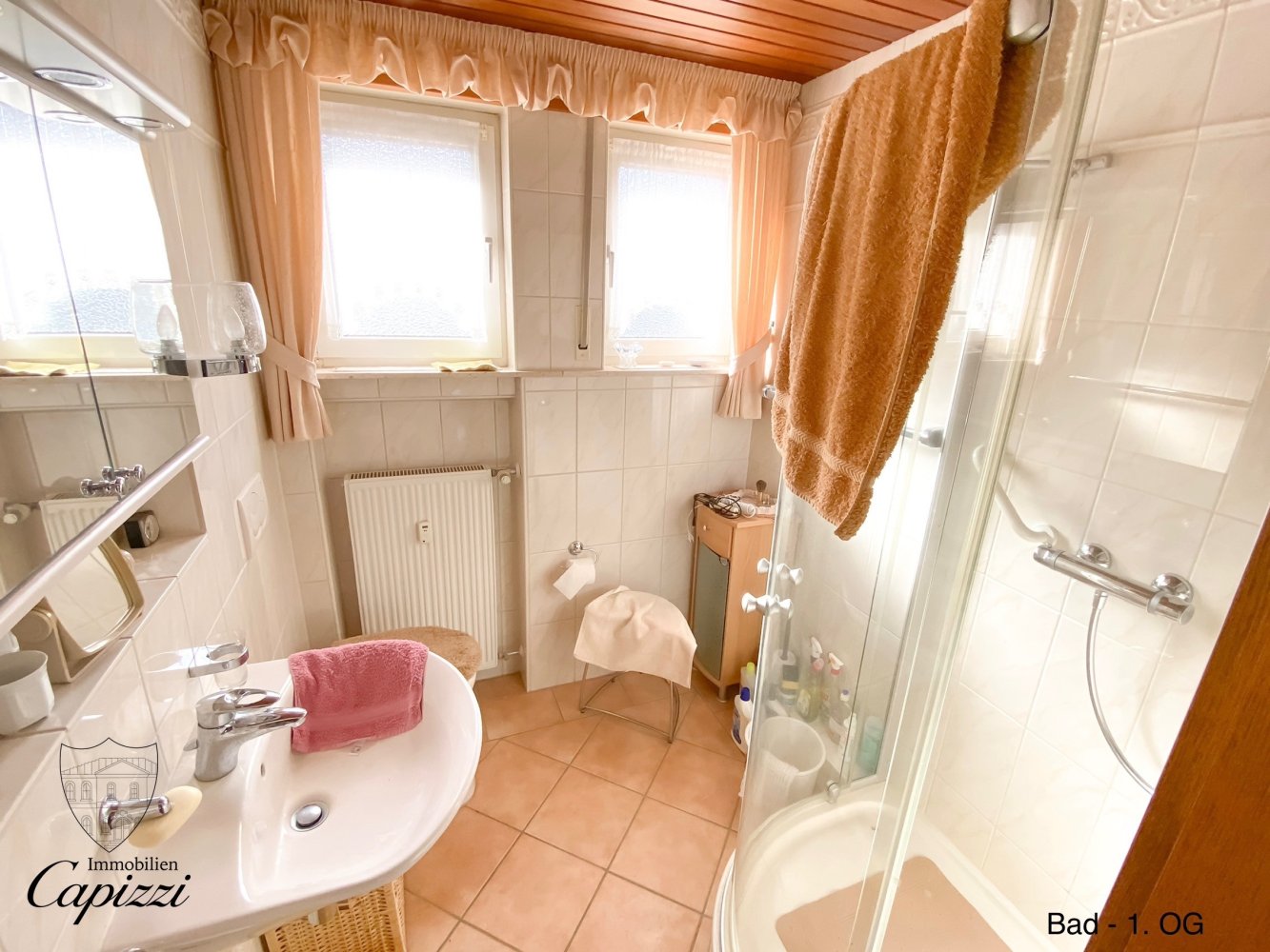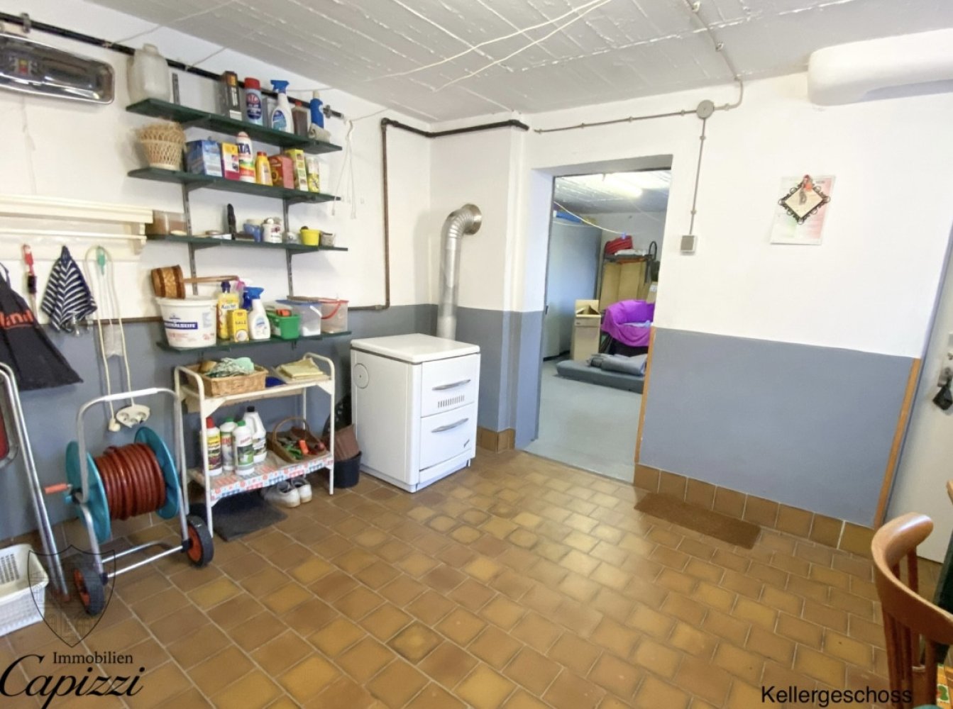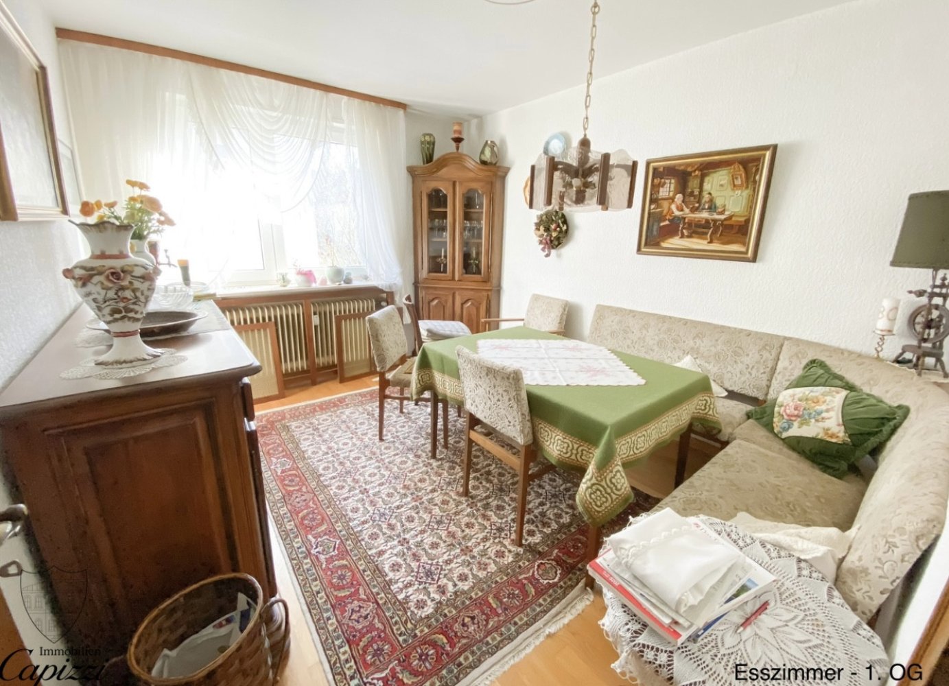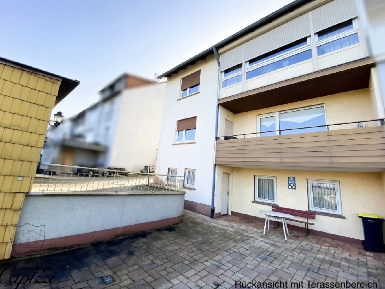 Das Erdgeschoss ist aktuell vermietet und umfasst eine klassische 3-Zimmer-Wohnung mit Küche, Bad und Balkon, wodurch laufende Einnahmen gegeben sind. Im 1. Obergeschoss befindet sich eine weitere 3-Zimmer-Wohnung, die sich durch eine angenehme Raumaufteilung, großzügige Fensterflächen und einen besonders schönen Ausblick auszeichnet.