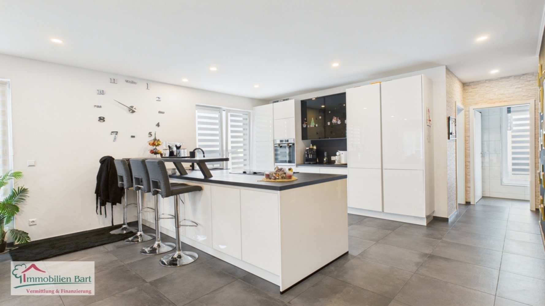 Das Haus verfügt über insgesamt drei Schlafzimmer. Herzstück der Immobilie ist der großzügige, offen gestaltete Wohn- und Essbereich mit einer hochwertigen Einbauküche, der ein modernes und zugleich wohnliches Ambiente schafft.