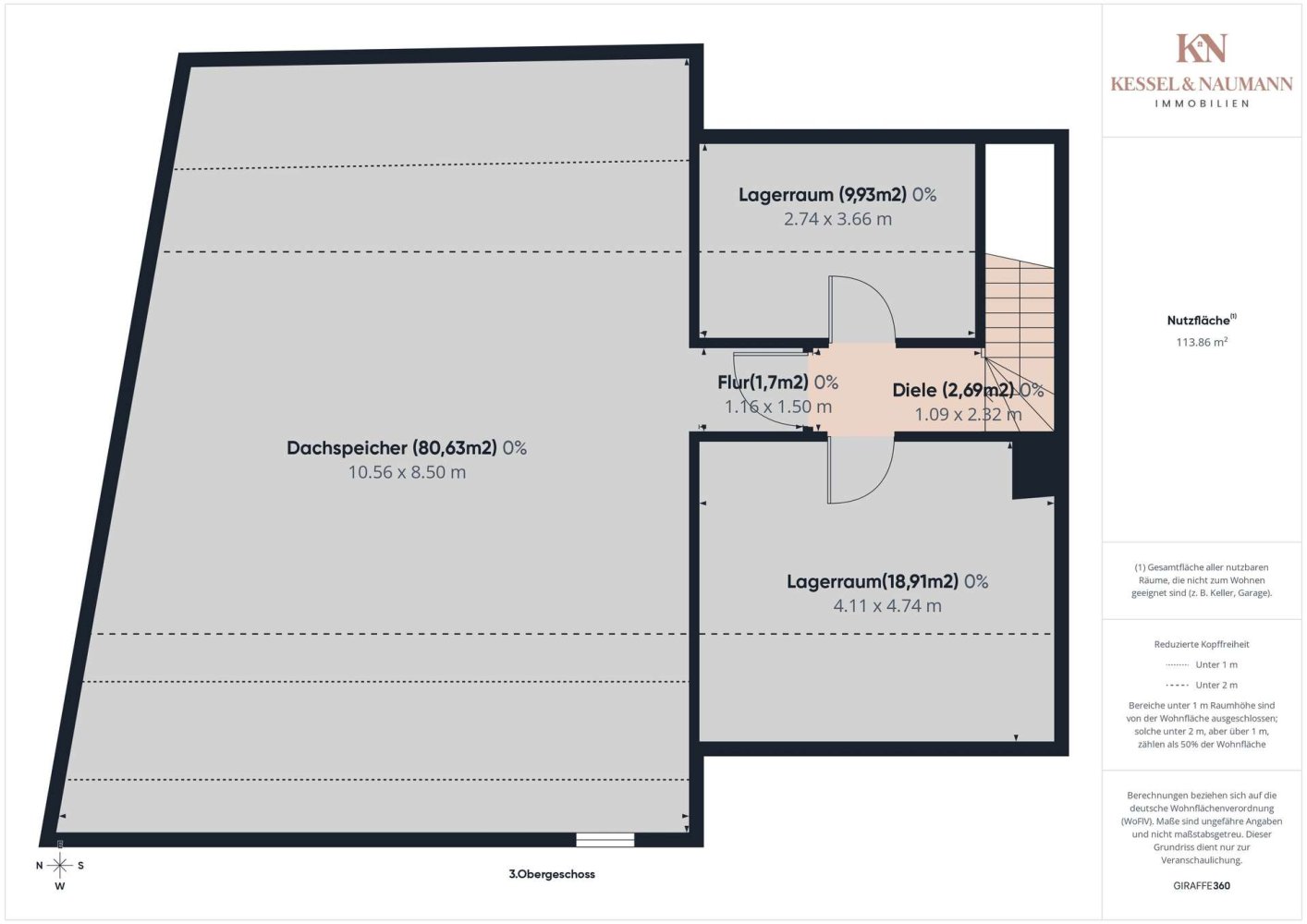 Die Immobilie bietet insgesamt eine Gewerbefläche von ca. 383,04 m², ergänzt durch einen großzügigen Dachspeicher mit ca. 113,86 m² Nutzfläche. Dadurch ergeben sich zahlreiche Möglichkeiten für Lagerung oder zukünftige Erweiterungen.