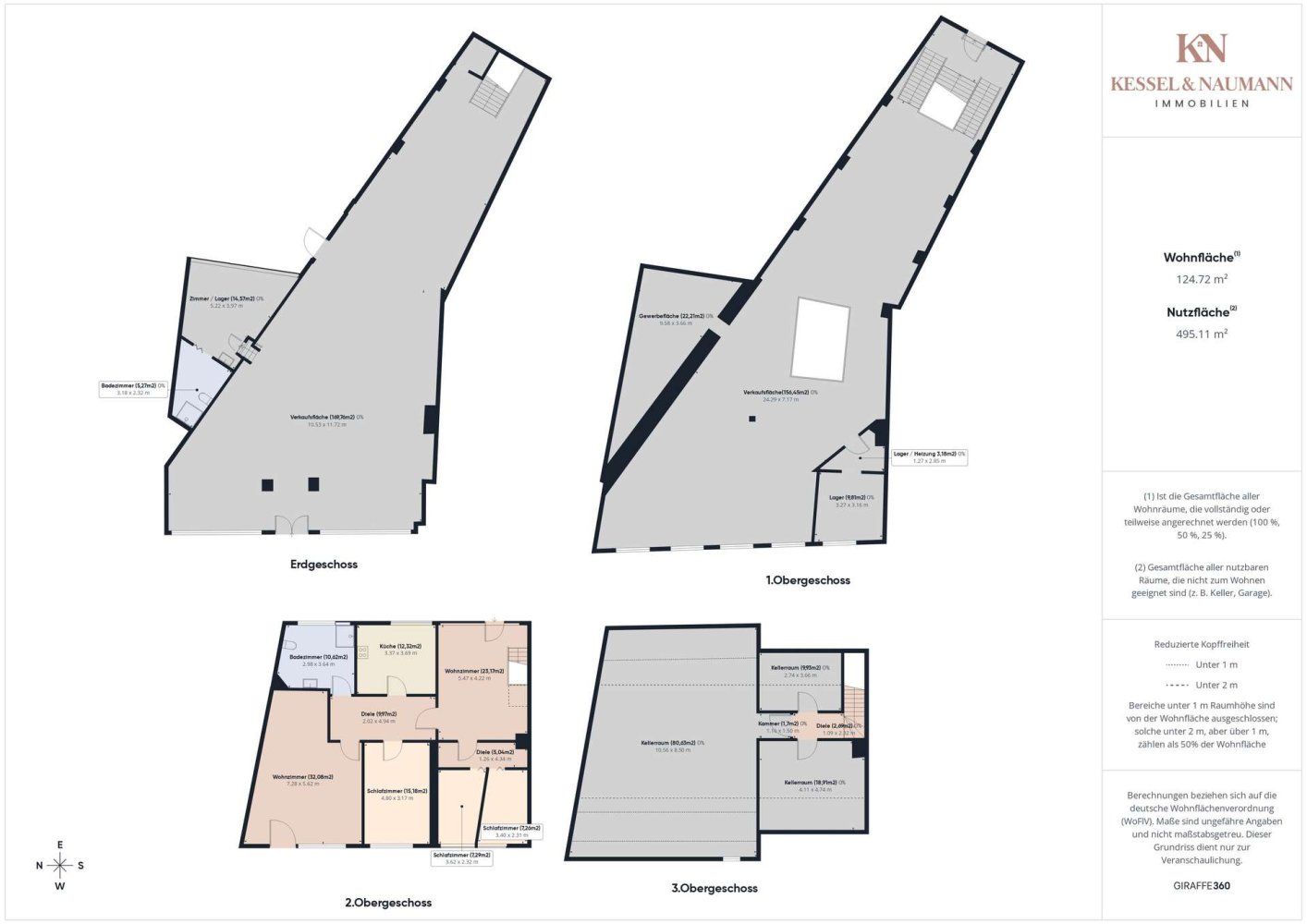 Im Erdgeschoss und teilweise im Obergeschoss befinden sich weitläufige Gewerbe- und Verkaufsflächen, die sich ideal für Einzelhandel, Dienstleistung oder Ausstellungsflächen eignen.