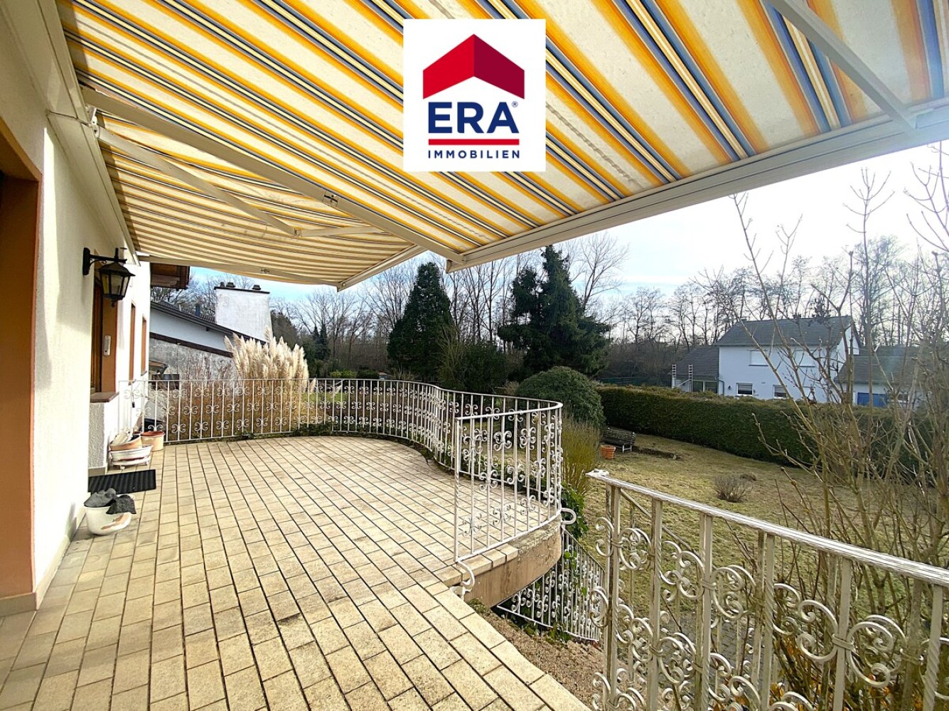 Terrasse mit Südausrichtung und elektrischer Doppelmarkise,