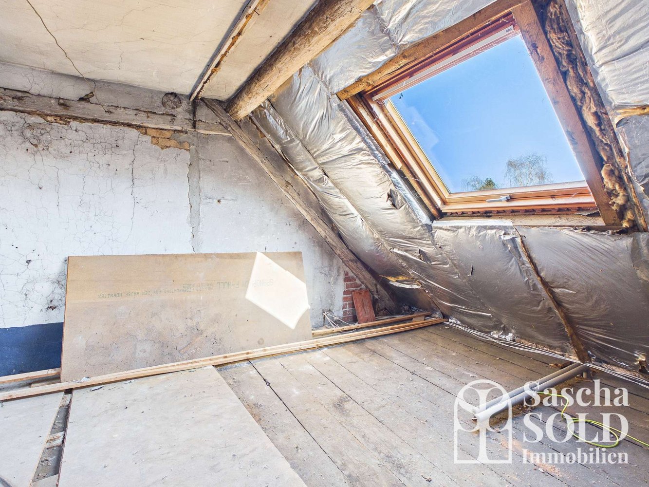 Eine Treppe führt in das Dachgeschoss, wo sich zwei weitere Räume befinden, die Ausbaupotenzial bieten. Eine Nutzung ist vorbehaltlich einer Abstimmung mit dem zuständigen Bauamt möglich.