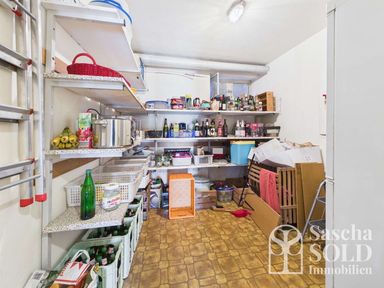 Das Untergeschoss ist straßenseitig über eine eigene Haustür zugänglich und verfügt somit über einen separaten Eingang. Hier befindet sich die Einliegerwohnung mit Diele, Wohn- und Esszimmer, Schlafzimmer, Küche, Bad sowie zusätzlichen Kellerräumen. Das Bad ist mit Badewanne, Dusche, Waschbecken und WC ausgestattet.