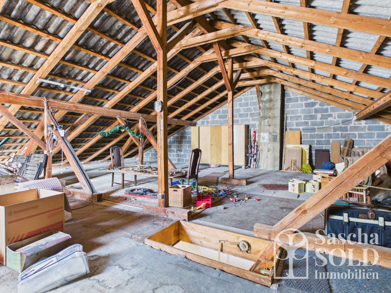 Das Dachgeschoss ist vom Erdgeschoss aus zugänglich und bietet einen großzügigen, bislang nicht ausgebauten Raum für zusätzliche Nutzungsmöglichkeiten, vorbehaltlich baurechtlicher Prüfung.
