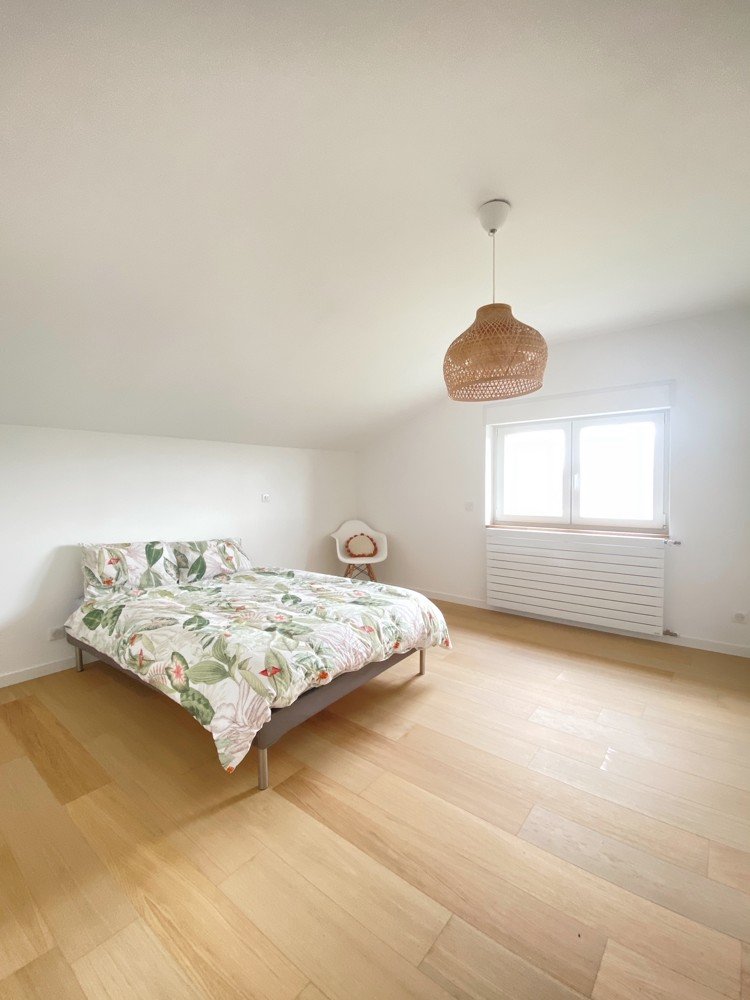 Im Erdgeschoss erwartet Sie ein großzügiger offener Bereich von rund 80m², der Wohnen, Essen und Kochen verbindet. Durch das offene Raumkonzept verschmelzen der Eingang, das Wohnzimmer und die Küche nahtlos miteinander. Die beeindruckenden Volumina und die außergewöhnliche Helligkeit prägen diesen Raum.