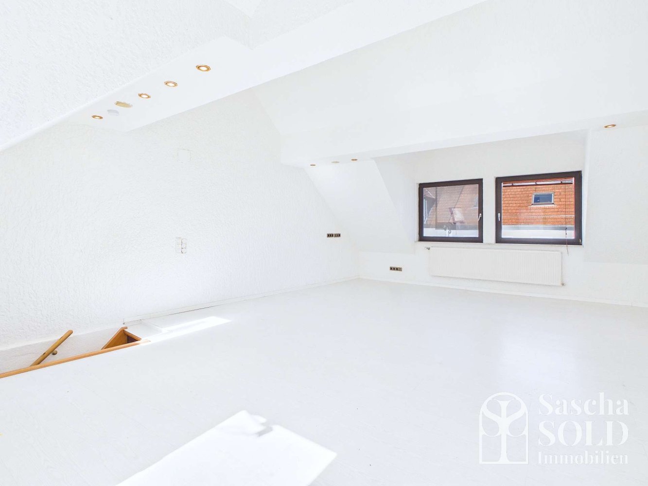 Eine Treppe führt von der Diele in das ausgebaute Dachgeschoss, das sich durch seine Helligkeit auszeichnet und sich ideal als großzügiger Wohnbereich nutzen lässt. Die vorhandene Dachgaube sorgt dabei für eine angenehme natürliche Belichtung.