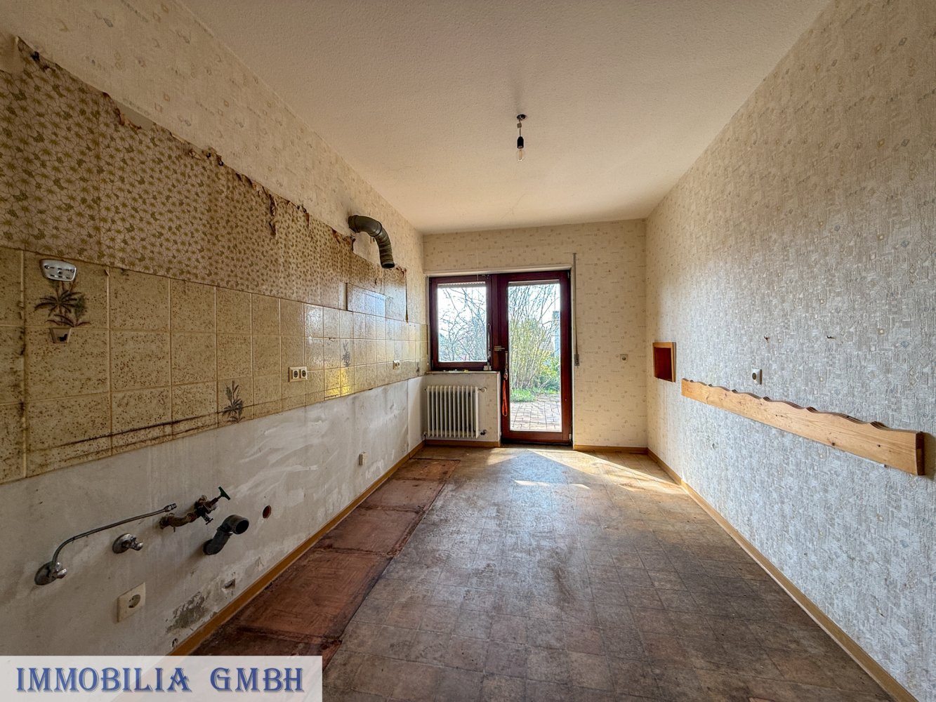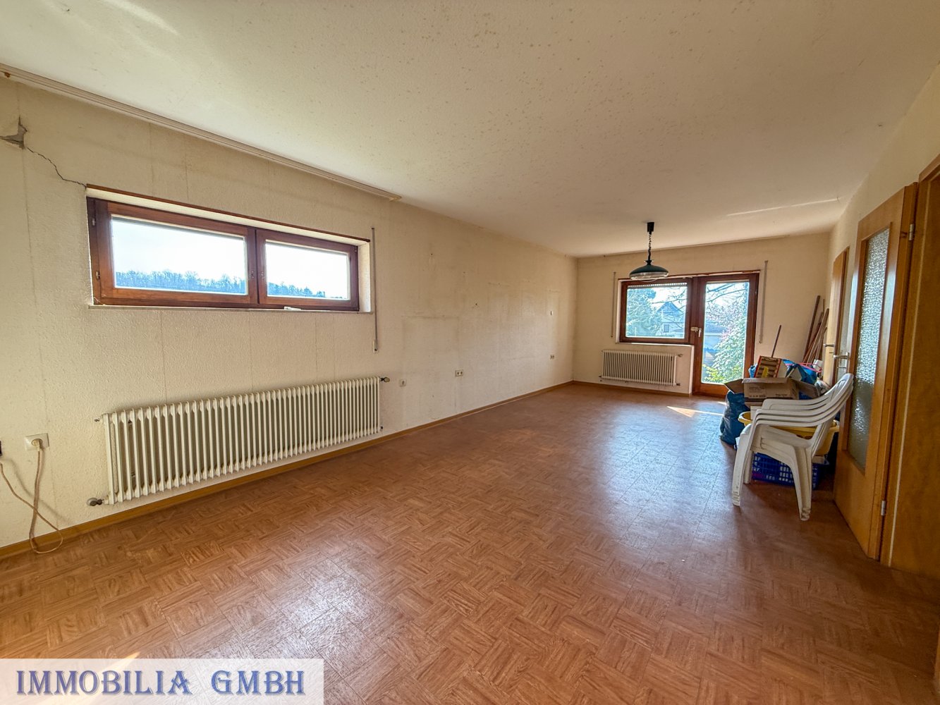 Die Immobilie ist vollständig geräumt und teilweise modernisiert, jedoch in einem renovierungsbedürftigen Zustand.