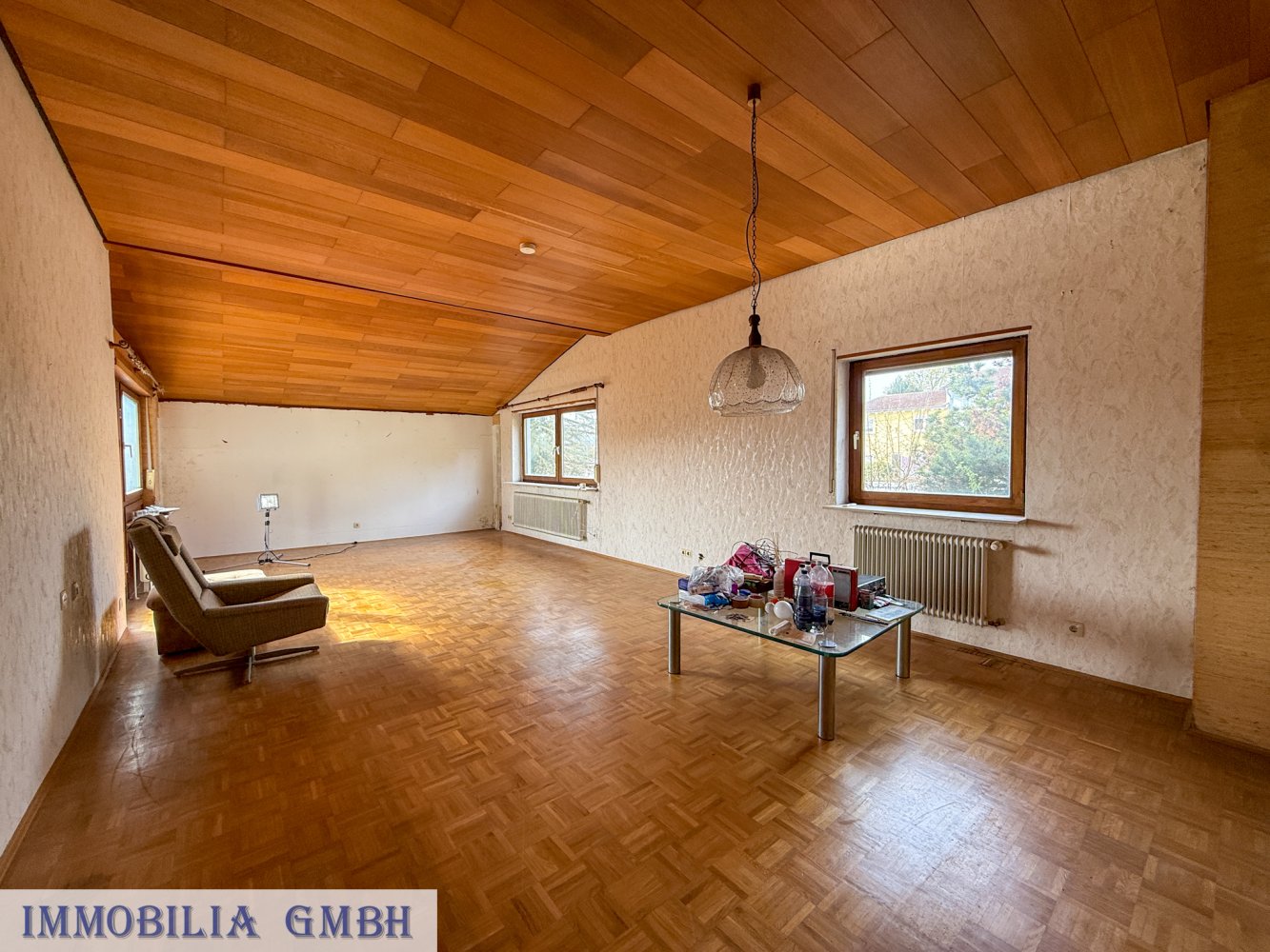 - Dach aus dem Baujahr, vermutlich mit Asbest gedeckt (Sanierungsbedarf einzuplanen)