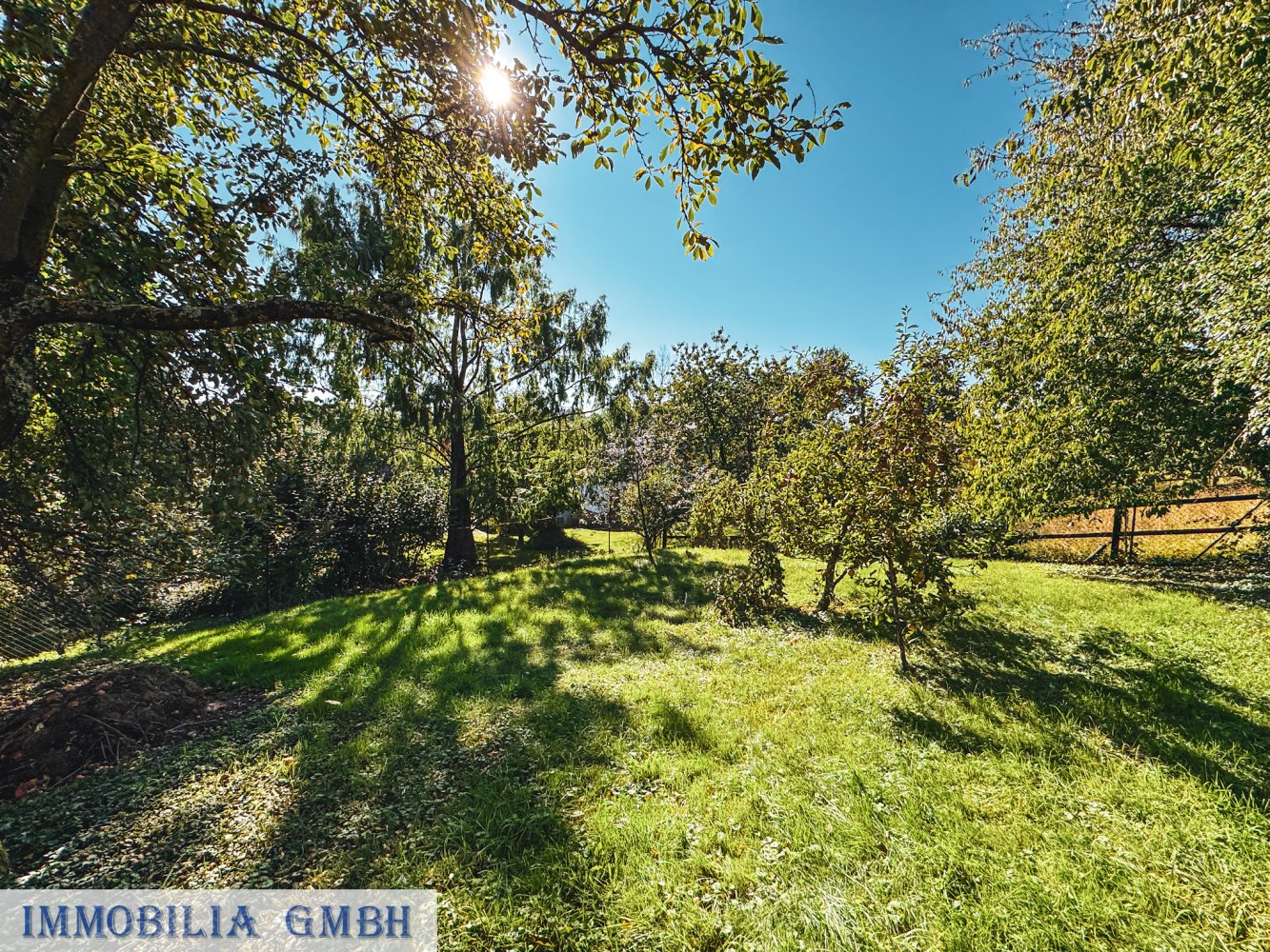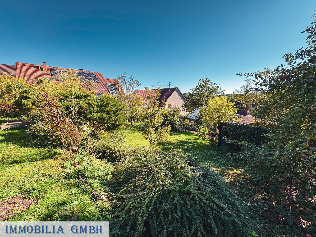 Das Highlight der Immobilie ist der weitläufige Garten mit altem Obstbaumbestand. Eine seitliche Einfahrt führt direkt in den hinteren Bereich des Grundstücks und unterstreicht die Vielseitigkeit der Nutzungsmöglichkeiten.