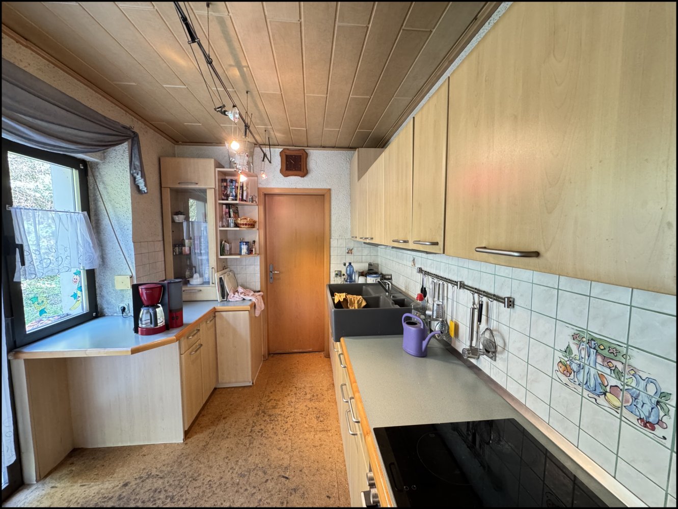 Im Haus finden sich überwiegend Kork, Laminat- und Dielenböden. Eine vorhandene Einbauküche ist nutzbar, kann aber im Zuge der Modernisierung zeitgemäß angepasst werden.
