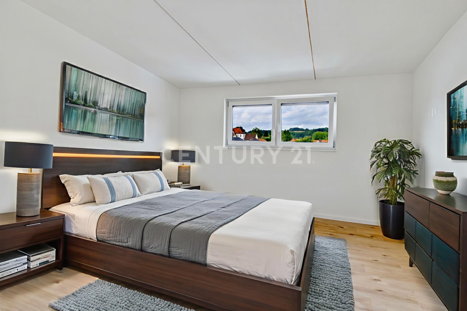 Das elegante Wellnessbad überzeugt durch hochwertige Ausstattung und lässt keine Wünsche offen: Eine bodentiefe Dusche, eine komfortable Badewanne sowie ein praktisches Tageslichtfenster machen diesen Raum zu einer kleinen Wohlfühloase. Das gemütliche Schlafzimmer bietet den idealen Rückzugsort, während ein separater Abstellraum für Ordnung und zusätzlichen Stauraum sorgt.