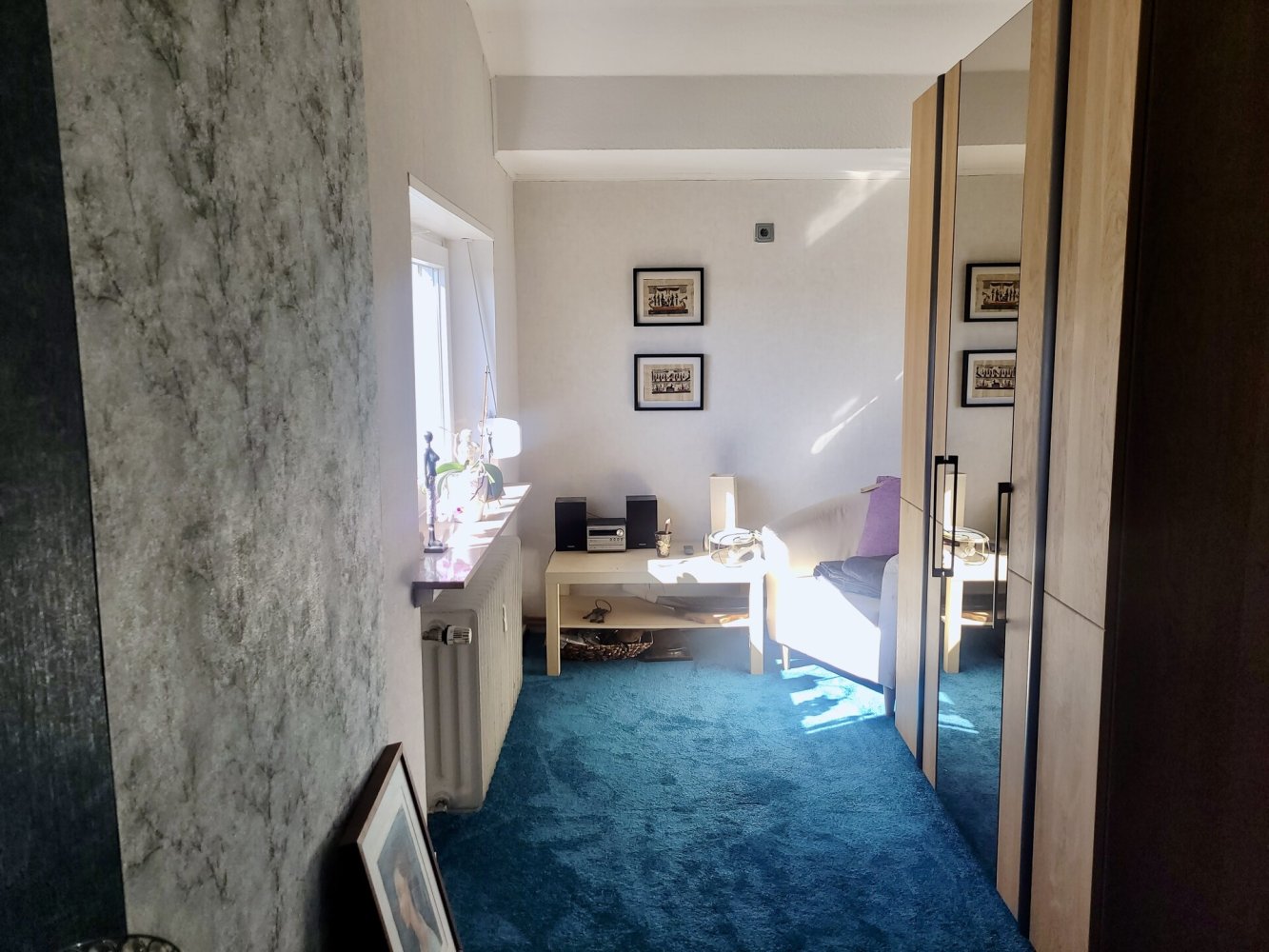Die Wohnung verfügt über Parkett- und Fliesenböden, der aktuell vorhandene Teppichboden wird vor dem Verkauf entfernt.