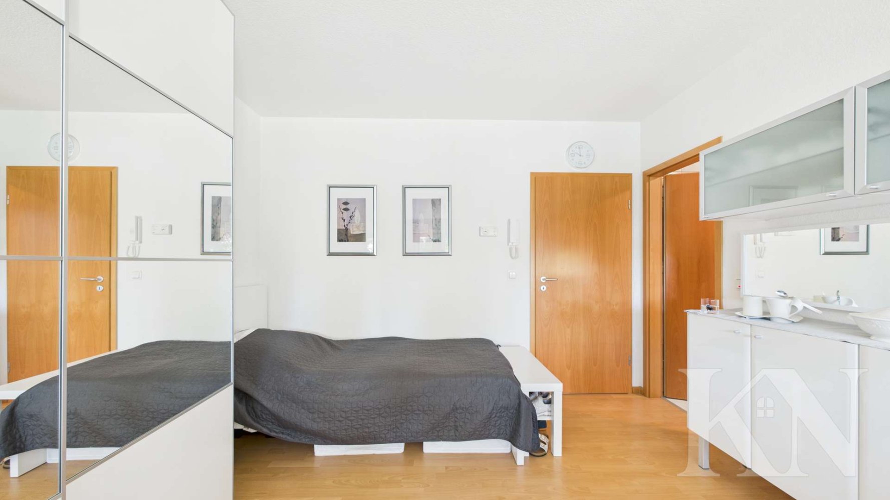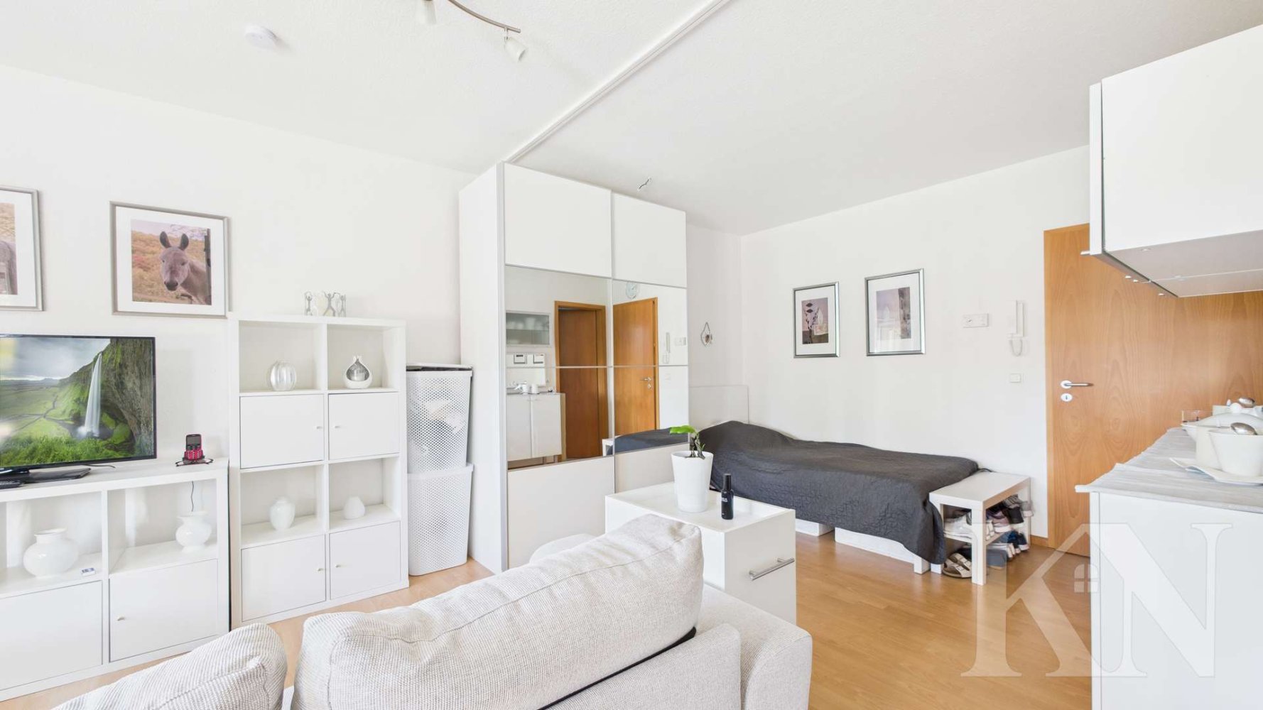 Der offene Wohn- und Essbereich mit integrierter Küche bildet das Herzstück der Wohnung und sorgt für ein großzügiges Raumgefühl. Große Fensterflächen schaffen ein helles, freundliches Ambiente und unterstreichen den modernen Charakter. Vom Wohnbereich aus gelangen Sie direkt auf den sonnigen Balkon mit Blick ins Grüne – perfekt zum Entspannen. Die gepflegte Wohnanlage bietet zusätzlich eine gemeinschaftlich nutzbare Gartenfläche.