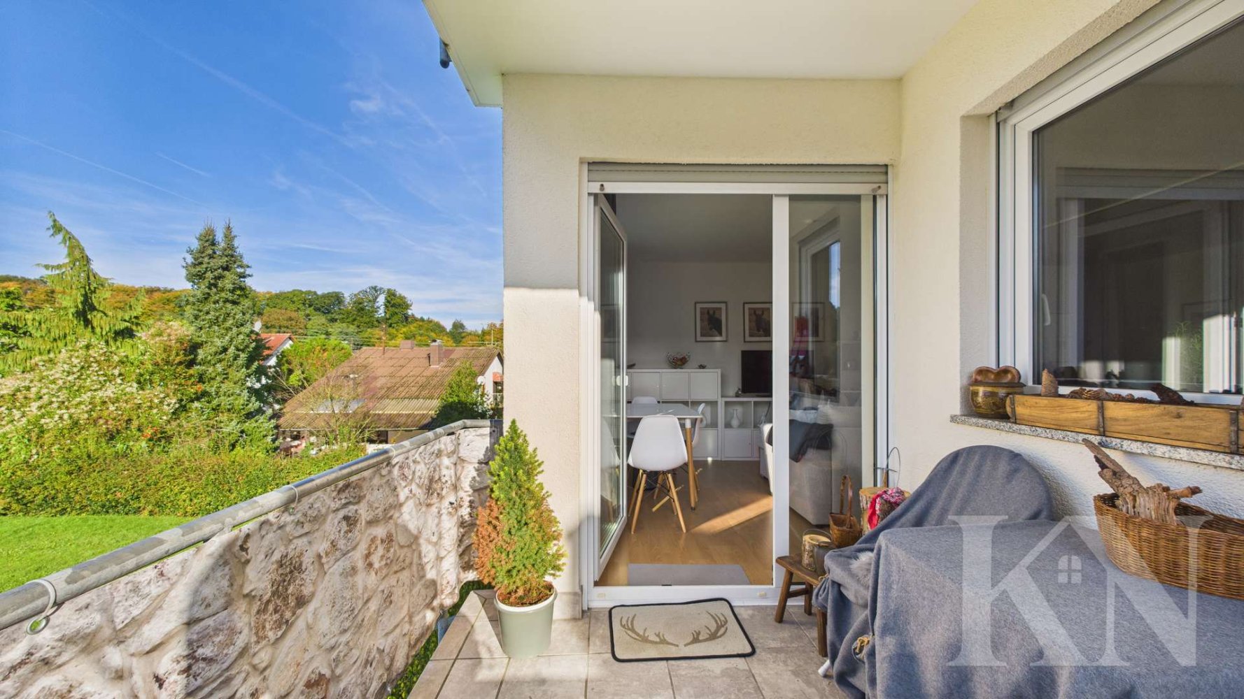 + Sonniger Balkon mit Blick ins Grüne