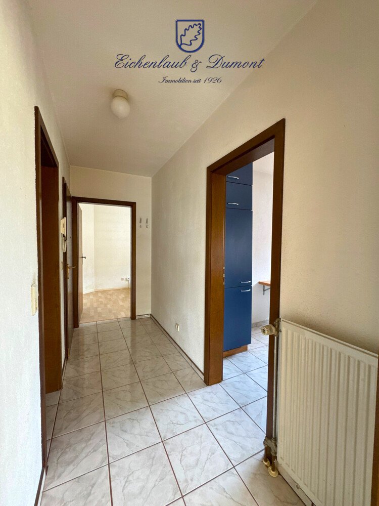 Über den Flur werden alle Räume der Wohnung, das Schlafzimmer, die Einbauküche, dass innenliegende Bad und der Wohn- und Essbereich erschlossen.