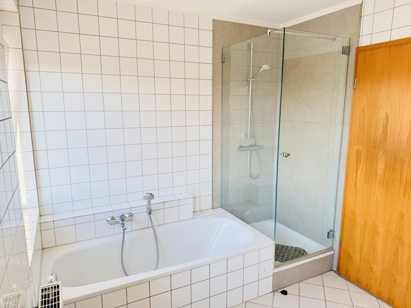 Auf der gegenüberliegenden Seite befinden sich das Elternschlafzimmer, ein weiteres Zimmer, das sich ideal als Kinder-, Arbeits- oder Gästezimmer eignet, sowie das Badezimmer mit Tageslicht, einer Badewanne und einer Dusche.