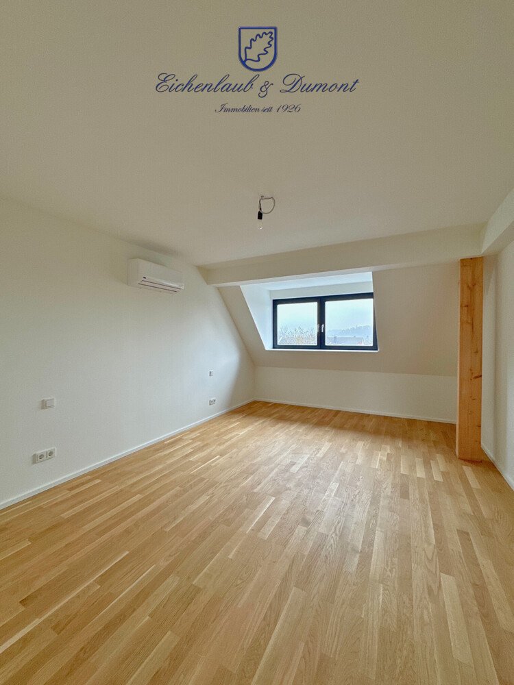 Der rund 32 m² große Wohn-, Ess- und Küchenbereich bietet auch den Ausgang zur Dachterrasse mit wunderbarer, unverbauter Aussicht auf die Umgebung. Der über eine Treppe erreichbare Dachstuhl steht mit rund 10m² Nutzfläche zur Verfügung.